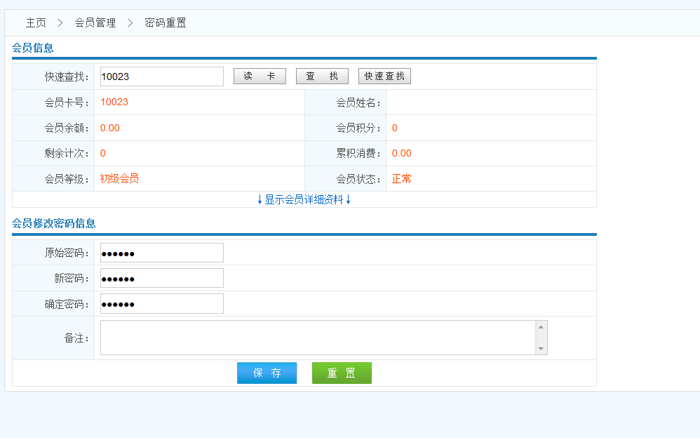 會(huì)員修改密碼信息