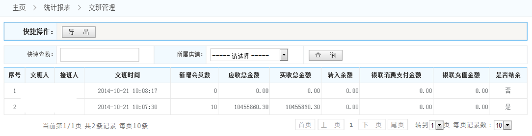 -> 五通一卡通云會員管理系統(tǒng)交班管理