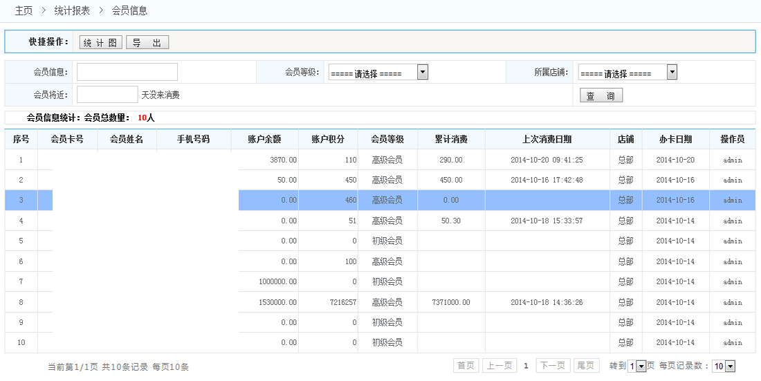 3.查詢:按照條件查詢出數(shù)據(jù)(例如 根據(jù)會(huì)員的店鋪會(huì)員的等級(jí)等)